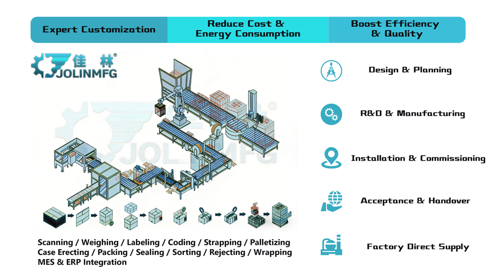 Robot Automático de Sellado Vertical de Cajas y Paletización, Línea de Producción de Empaquetado Final para la Industria de Alimentos, Bebidas y Electrónica