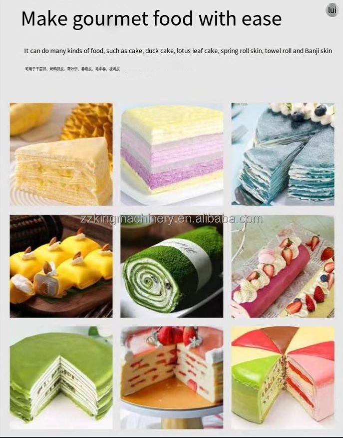 Máquina automática para hacer pasteles de crepé Mille, máquina para hacer panqueques finos, papel de arroz, máquina para panqueques de pastel de pato asado