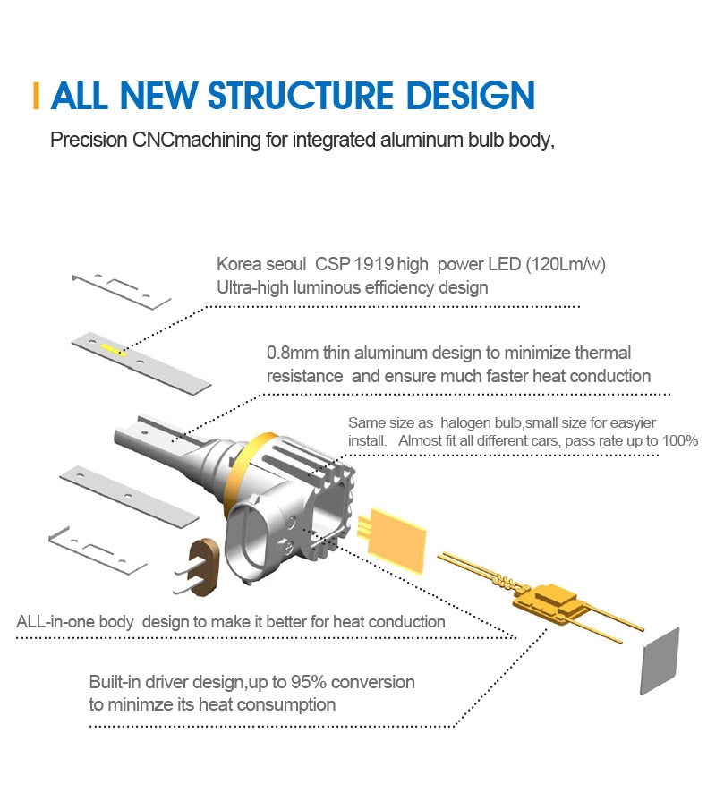 Tipo de haz único:H1/H3/H7/H8/H9/H10/H11/H16/H27/9005/9006