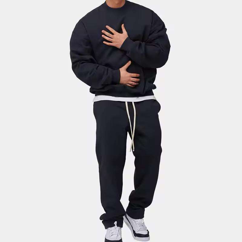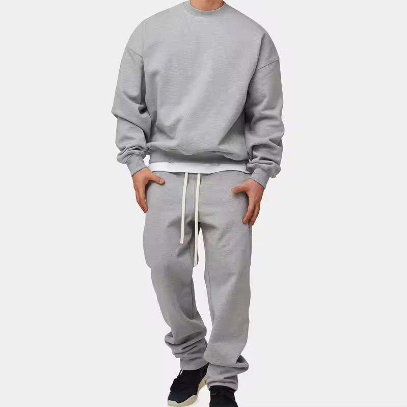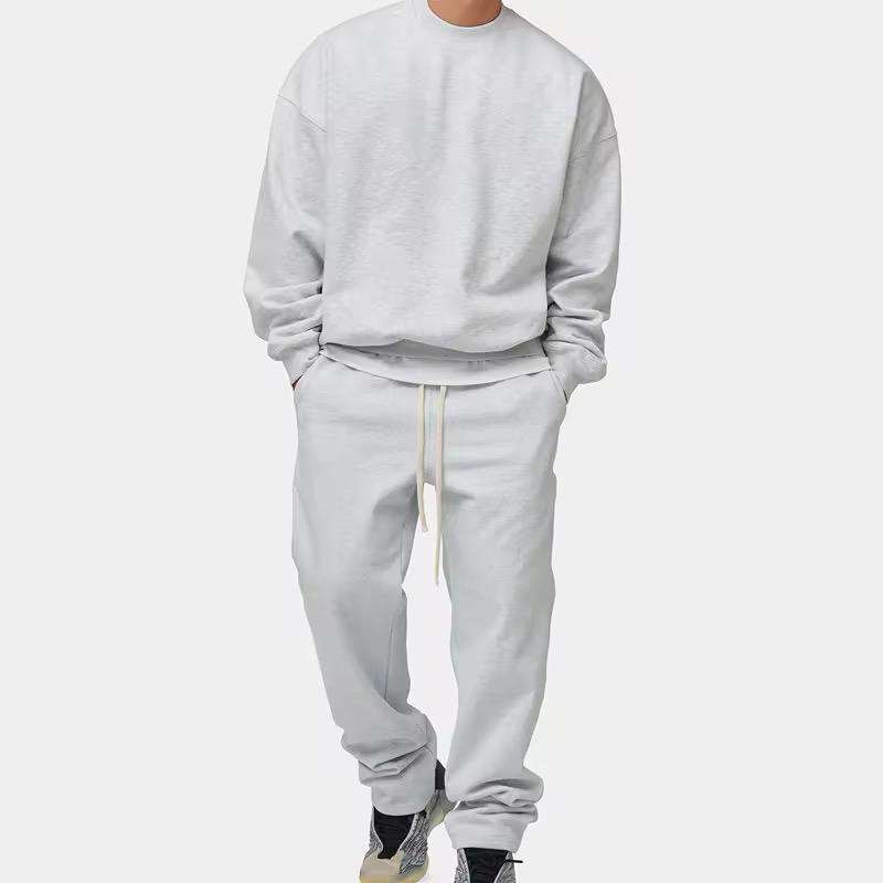 Otoño personalizado su propio diseño de logotipo dos piezas chándales en blanco de gran tamaño cuello redondo deportes hombres chándal
