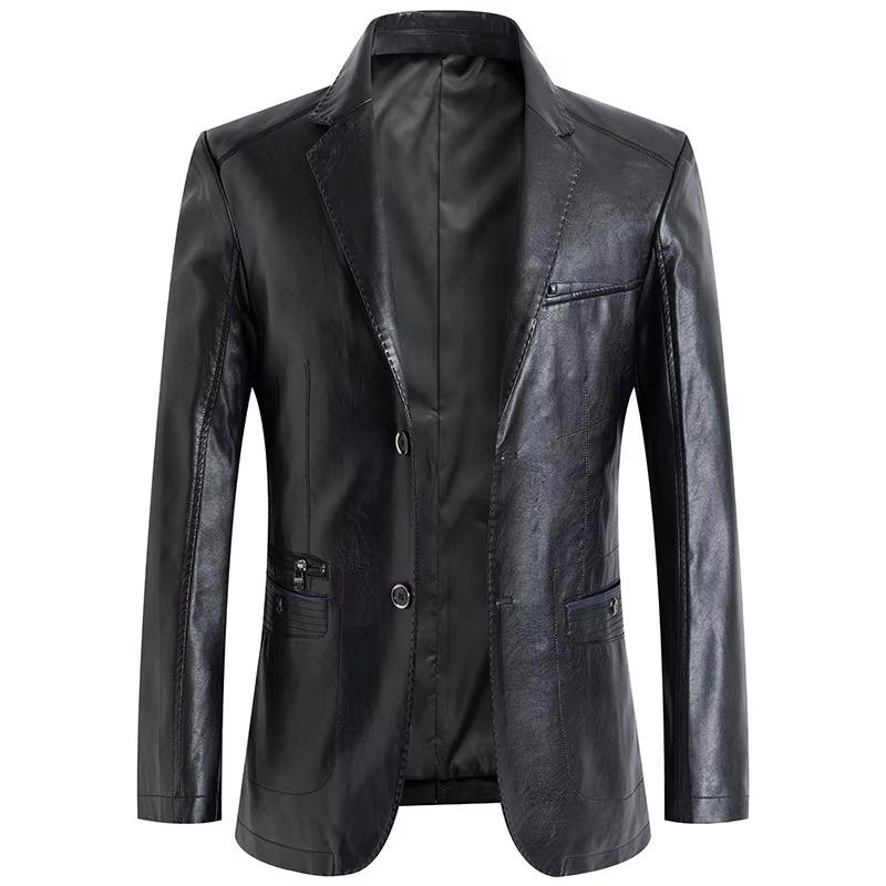 Chaqueta Universitaria de Cuero de Color Sólido para Hombre de Otoño, Cuello Alto, con Capucha, Casual, Talla Grande 6XL-7XL