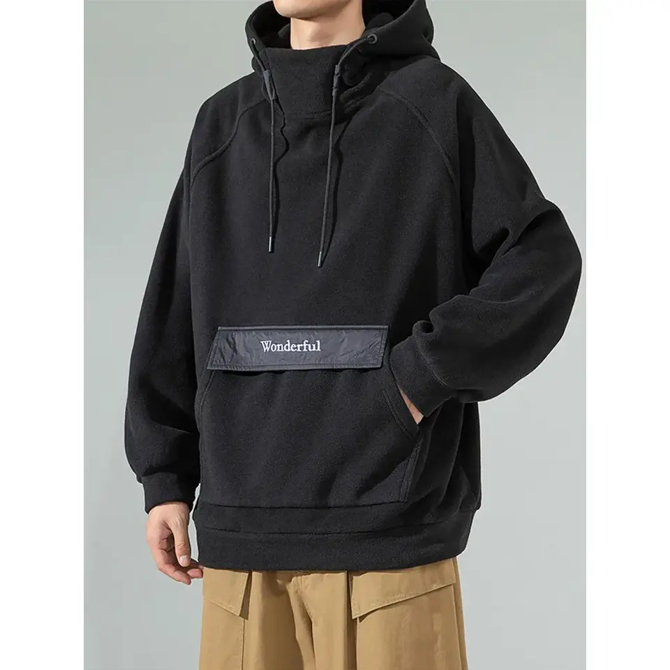 Otoño Hombres estilo Vintage medio cuello alto Sudadera con capucha Y2K a prueba de viento pulóver Streetwear sudaderas Casual estilo Vintage