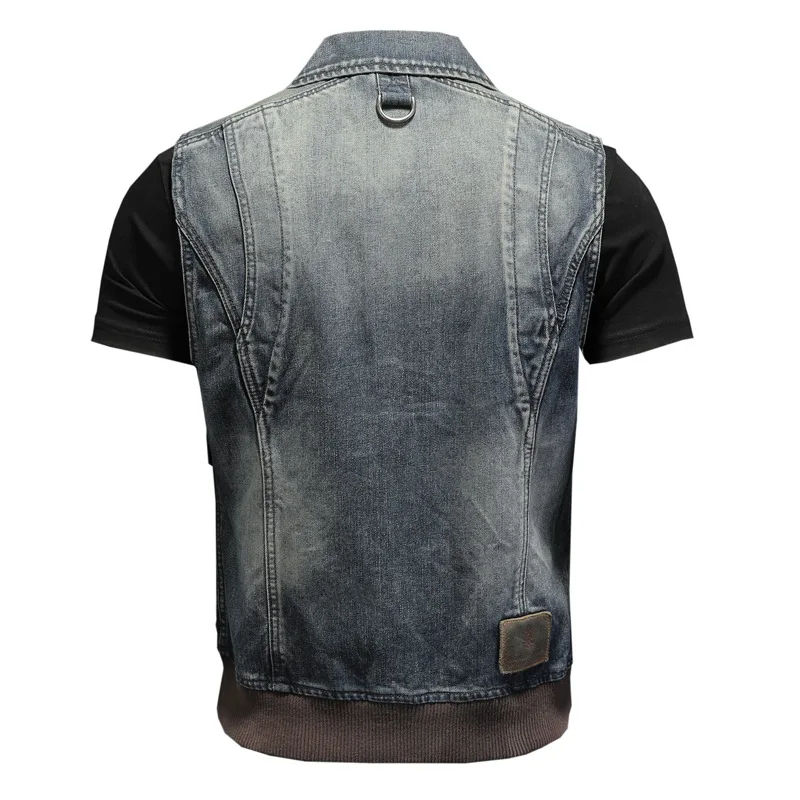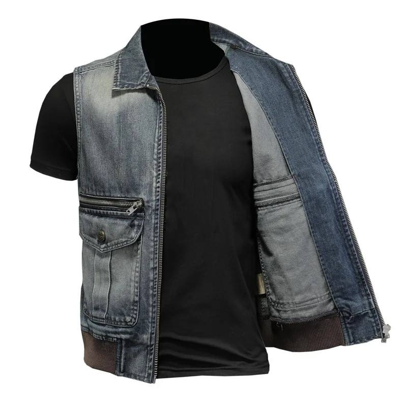 Chaleco Vaquero Desgastado Transpirable para Hombre, Estilo Retro Cowboy Hip Hop, con Botones, Moda Casual Urbana para Otoño