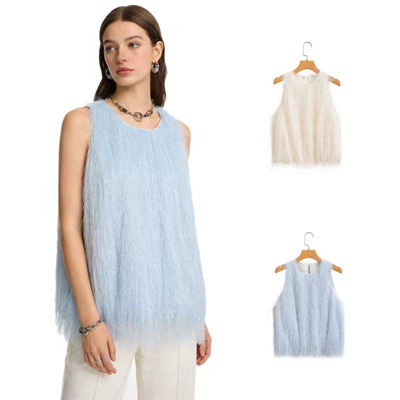 Nuevo Top Corto sin Mangas con Cuello Redondo, Abertura Trasera con Botones y Borlas para Otoño