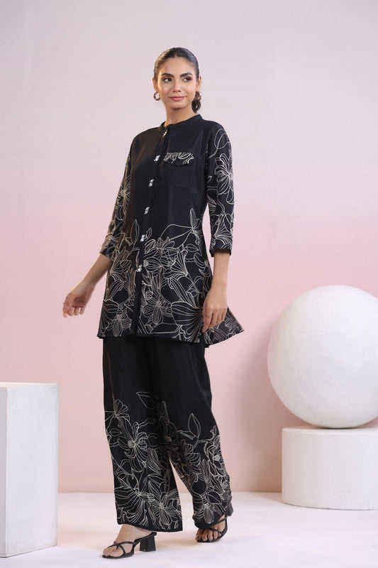Otoño nuevo diseño conjunto de seda para mujer conjunto fino de tres cuartos de manga conjuntos de dos piezas de moda impresa señoras al mejor precio