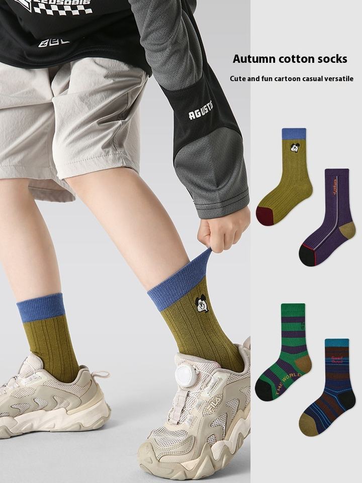 Otoño nuevo doble aguja bordado letras calcetines deportivos sin hueso transpirable algodón tubo calcetines al por mayor para niños y niñas