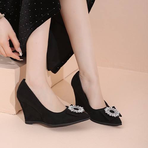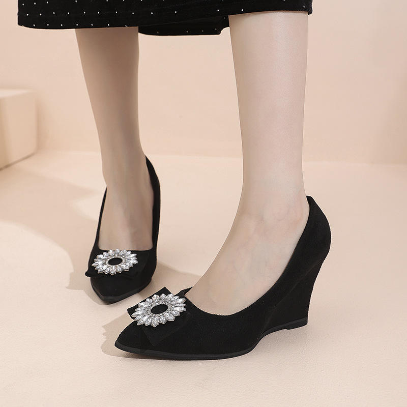 Zapatos de Tacón de Cuña con Punta Puntiaguda para Mujer, Talla Grande, Plataforma, Estilo Europeo Americano, Boca Poco Profunda, Zapatos Profesionales 43