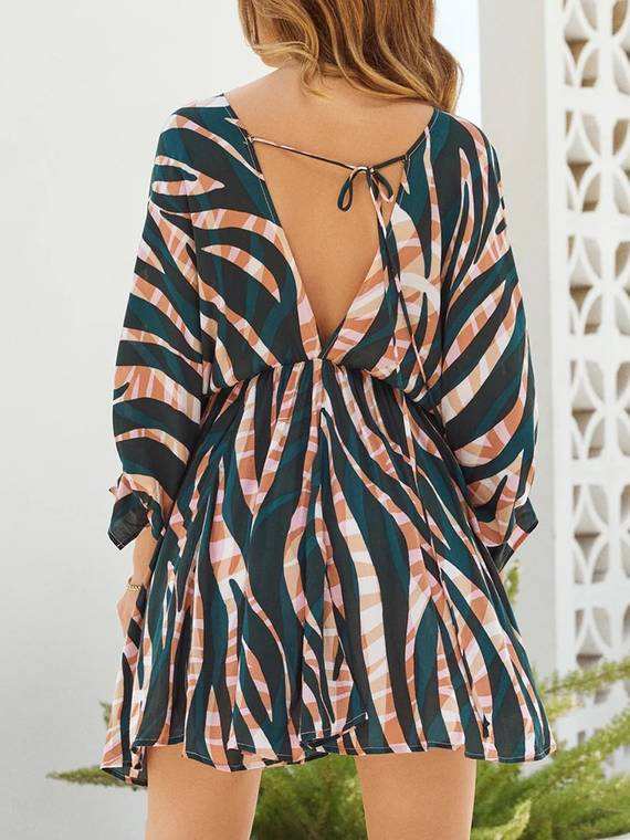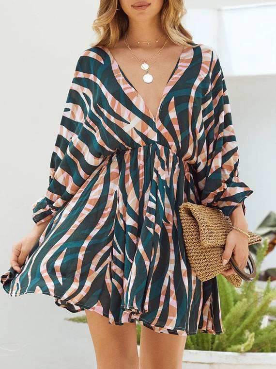 Ropa de fiesta de otoño Mini vestido Sexy para niñas nuevo estampado de verano 100% algodón cuello en V profundo Casual media manga tejida cintura Natural