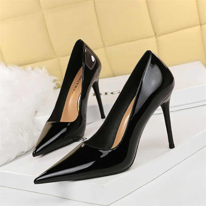Zapatos de tacón de aguja de charol con punta fina para mujer, elegantes y sexys, ideales para oficina, fiestas y bodas, con tacones altos y rasos, para otoño.