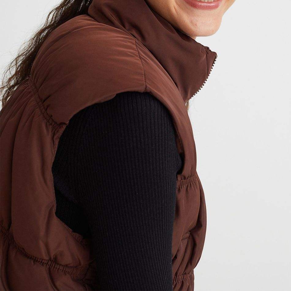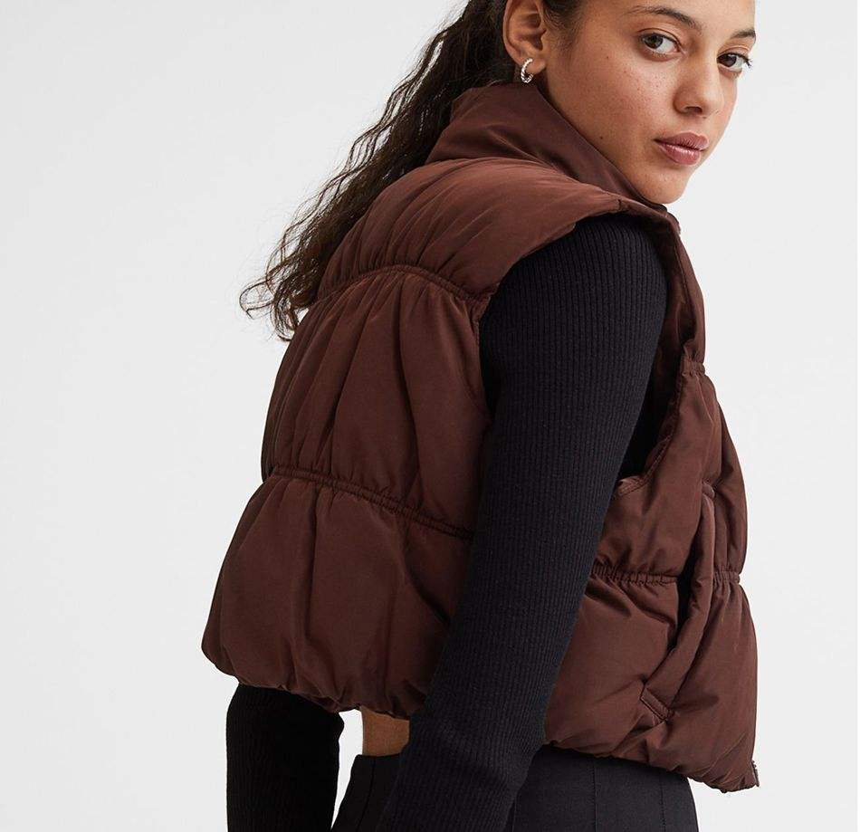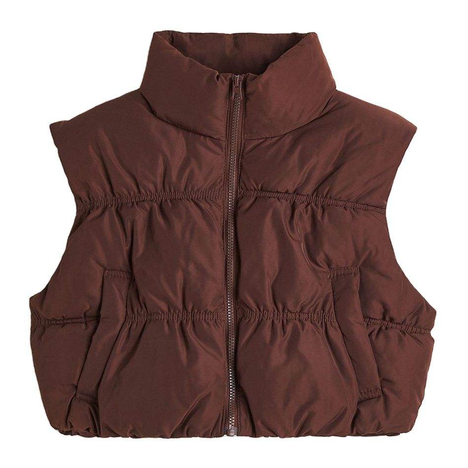 Chaleco Corto de Mezclilla con Cremallera de Color Sólido para Otoño, con Logo en Ambos Lados, Chaqueta con Mangas Abullonadas, la Mejor Tendencia Personalizada para Mujer