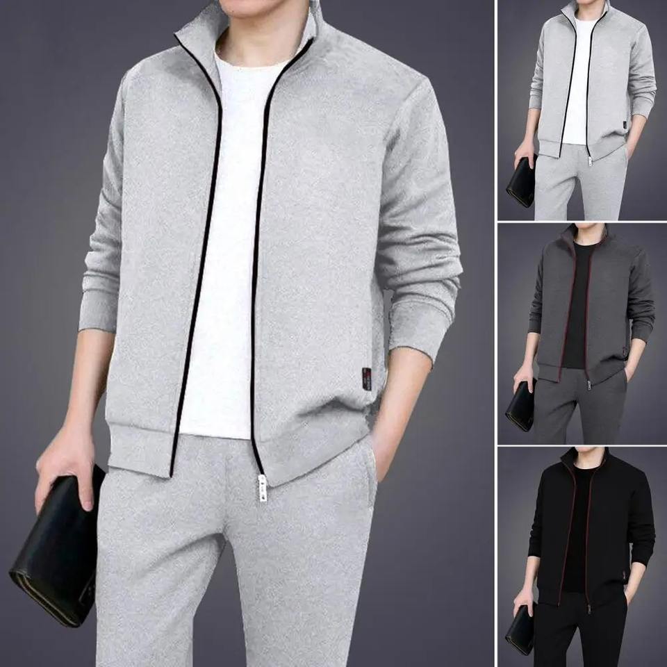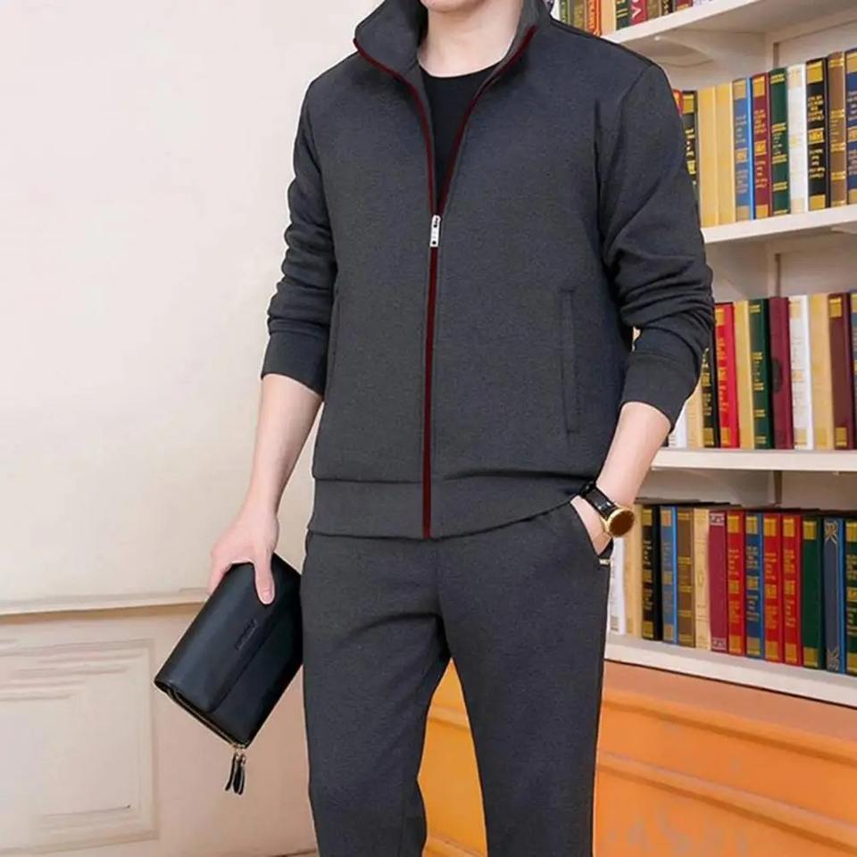 Otoño primavera hombres 100% algodón gimnasio trajes cremallera sudaderas pantalones traje moda Casual chándal para invierno tejido Formal