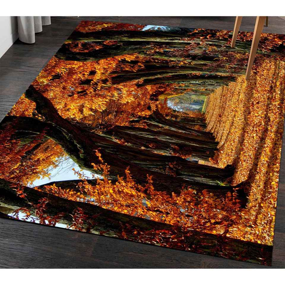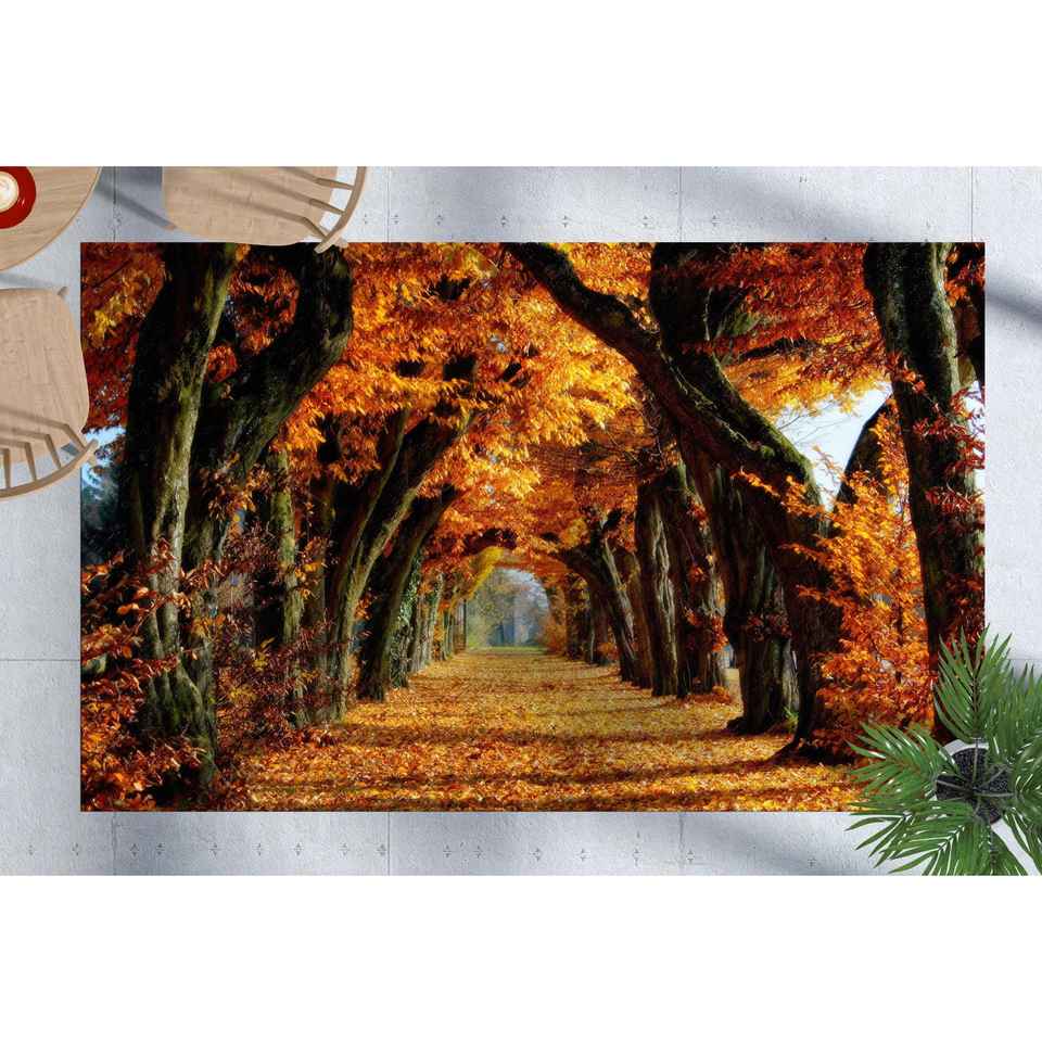 Alfombra con diseño de paisaje de árboles de otoño, alfombras con diseño de paisaje de árboles, alfombras con diseño de paisaje de otoño, alfombra con vista panorámica, alfombra de chenilla