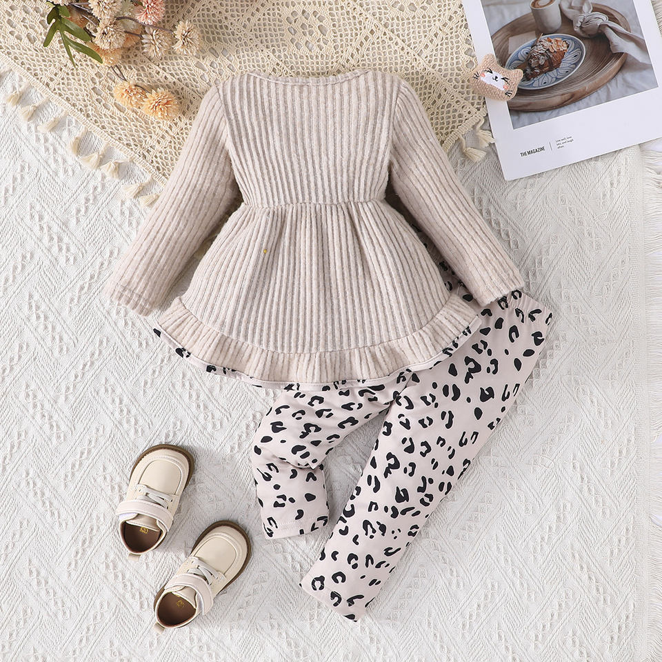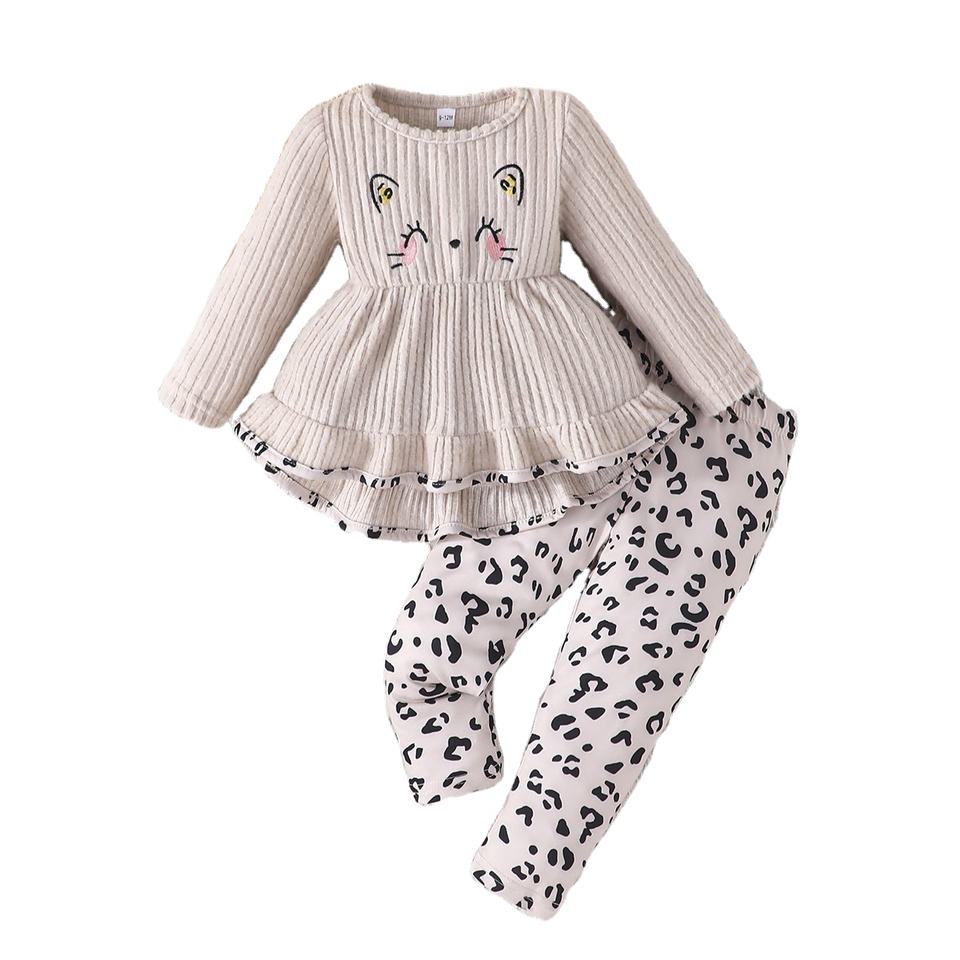 Conjunto de Dos Piezas Otoñal para Bebés Niñas, Top de Manga Larga con Estampado de Sonrisa y Pantalones Casuales para Deportes y Ocio al Aire Libre