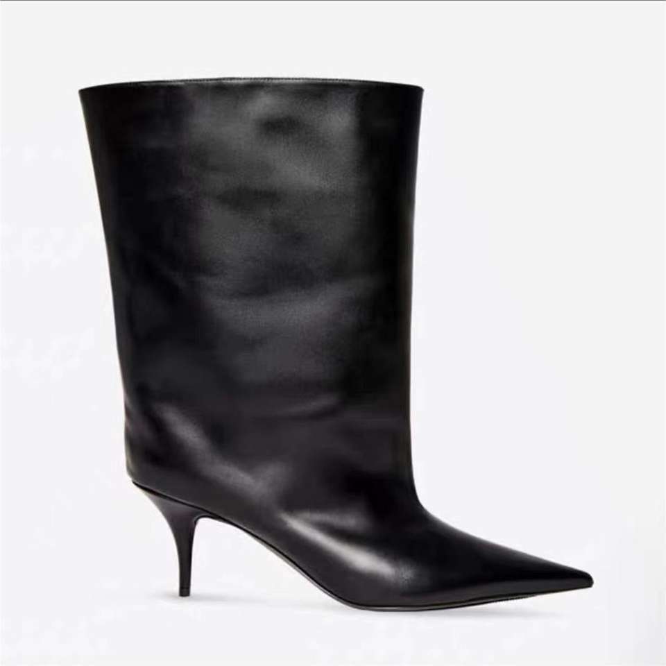 Otoño Invierno negro volumen exagerado piel de becerro mate tacón de aguja niñas tobillo alto pierna ancha Botines de cuero botas