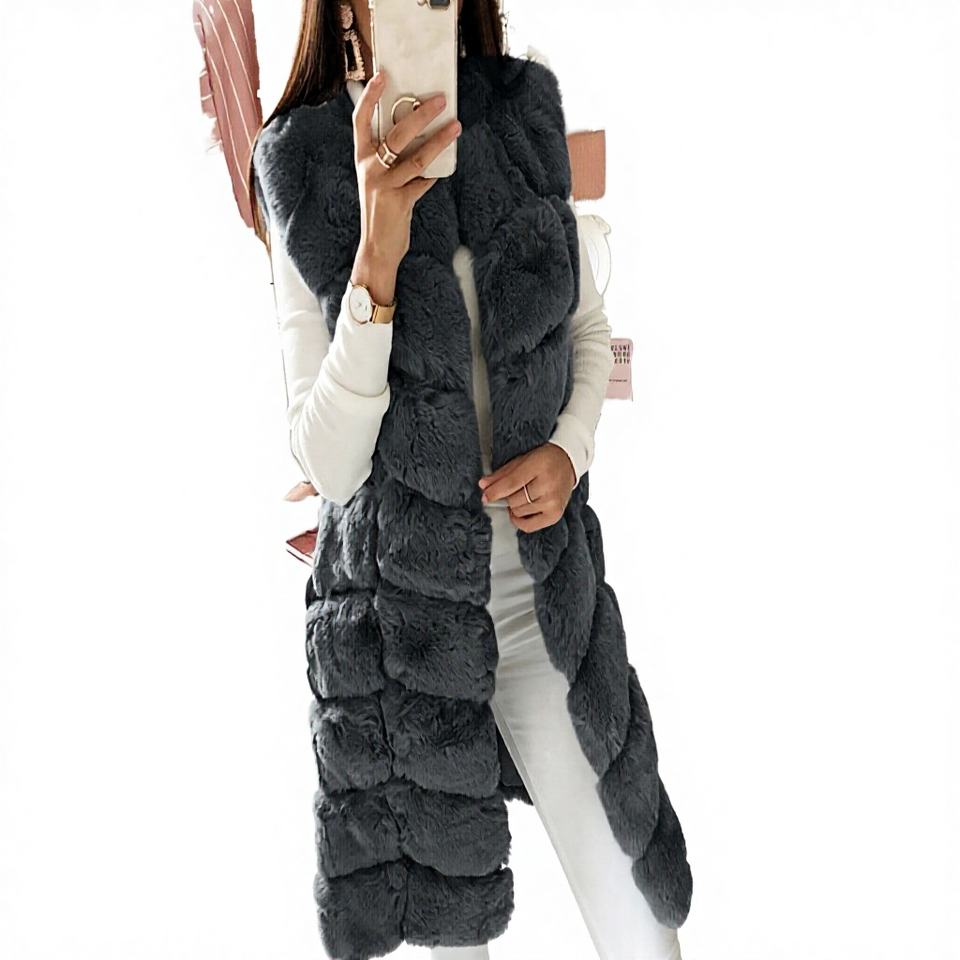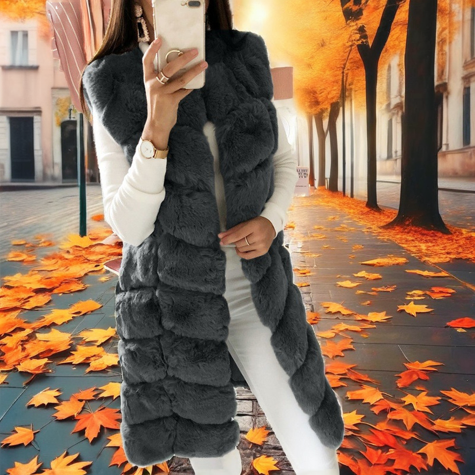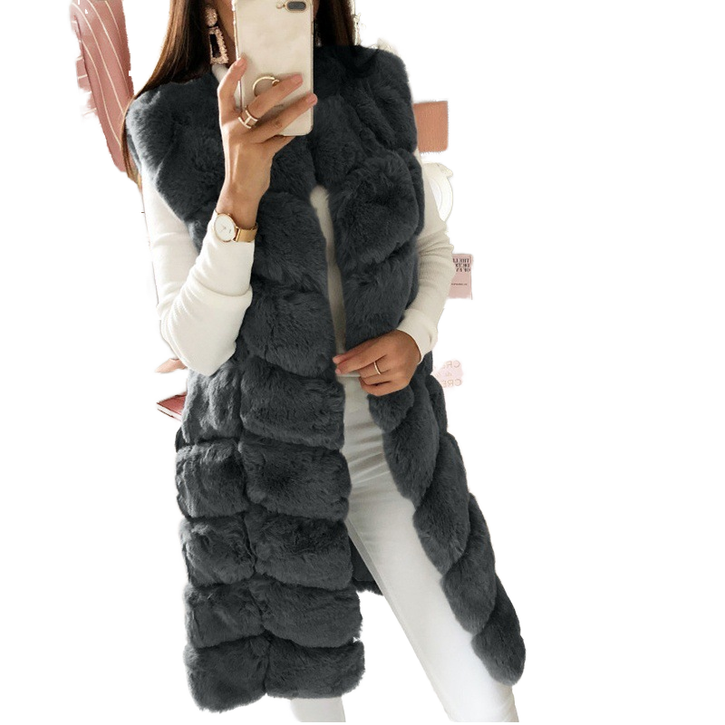 Chaleco largo de lana artificial de conejo, nuevo para otoño-invierno, acolchado de algodón, cálido y afelpado, para maternidad, estilo urbano y versátil.