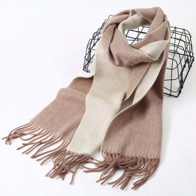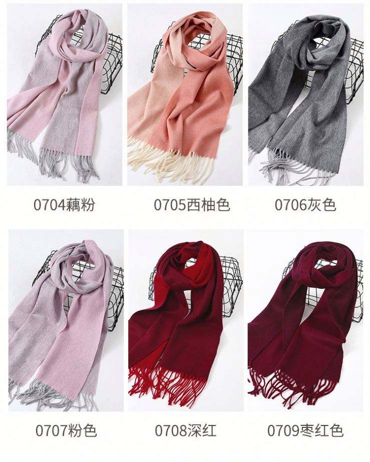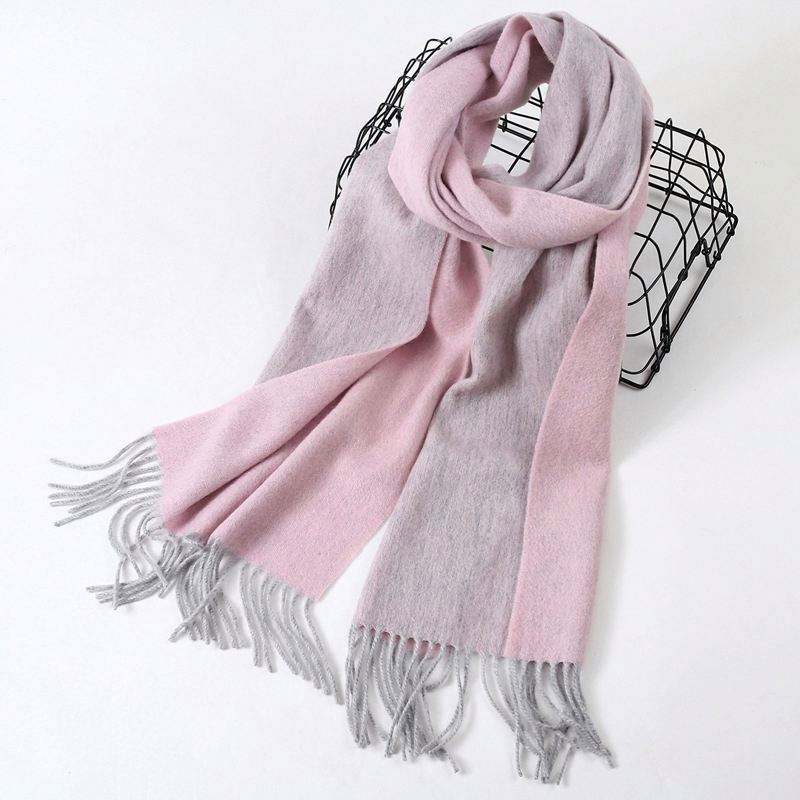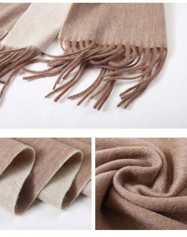 Bufanda de Lana Pura Gruesa Bordada de Doble Cara y Dos Tonos para Mujer, Regalo Anual de Otoño-Invierno