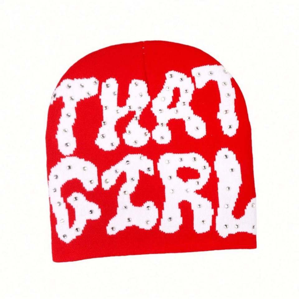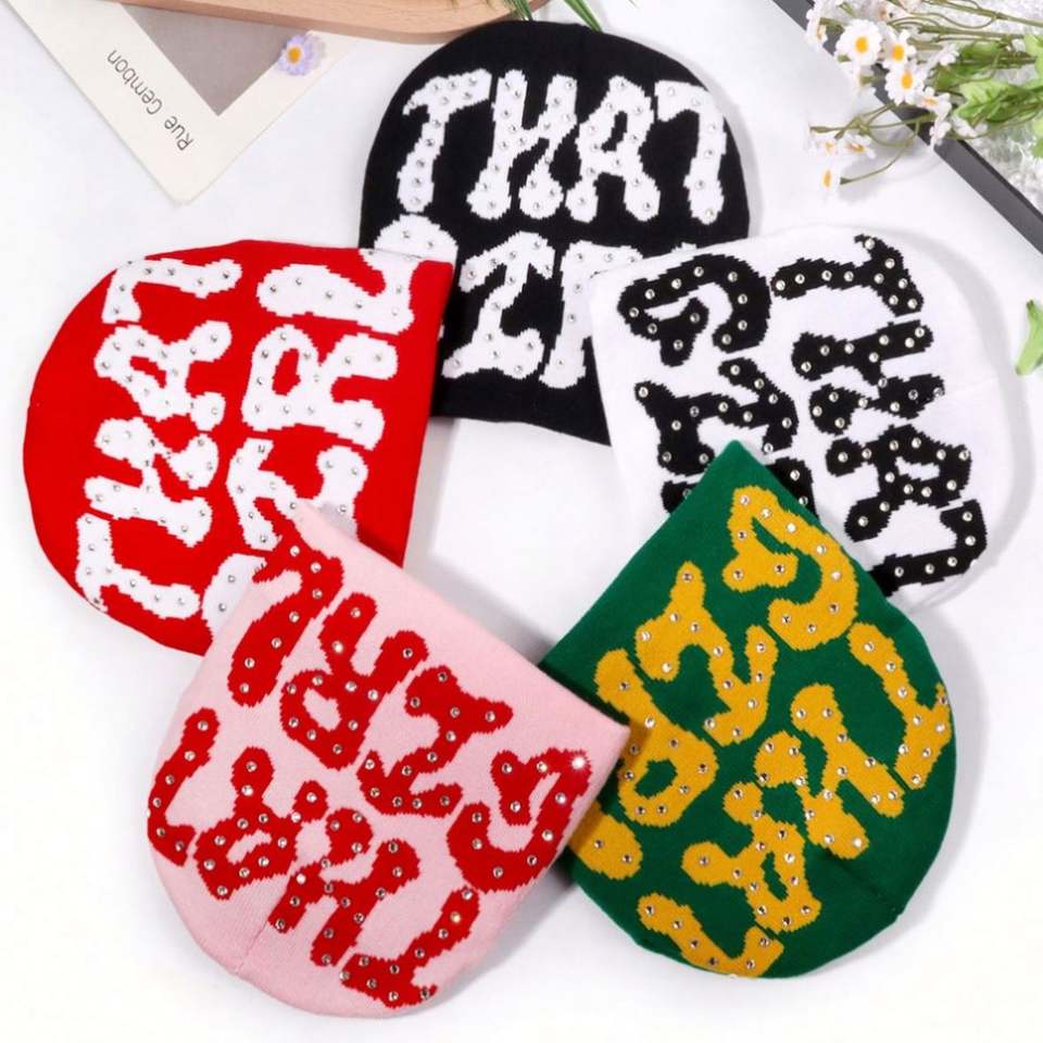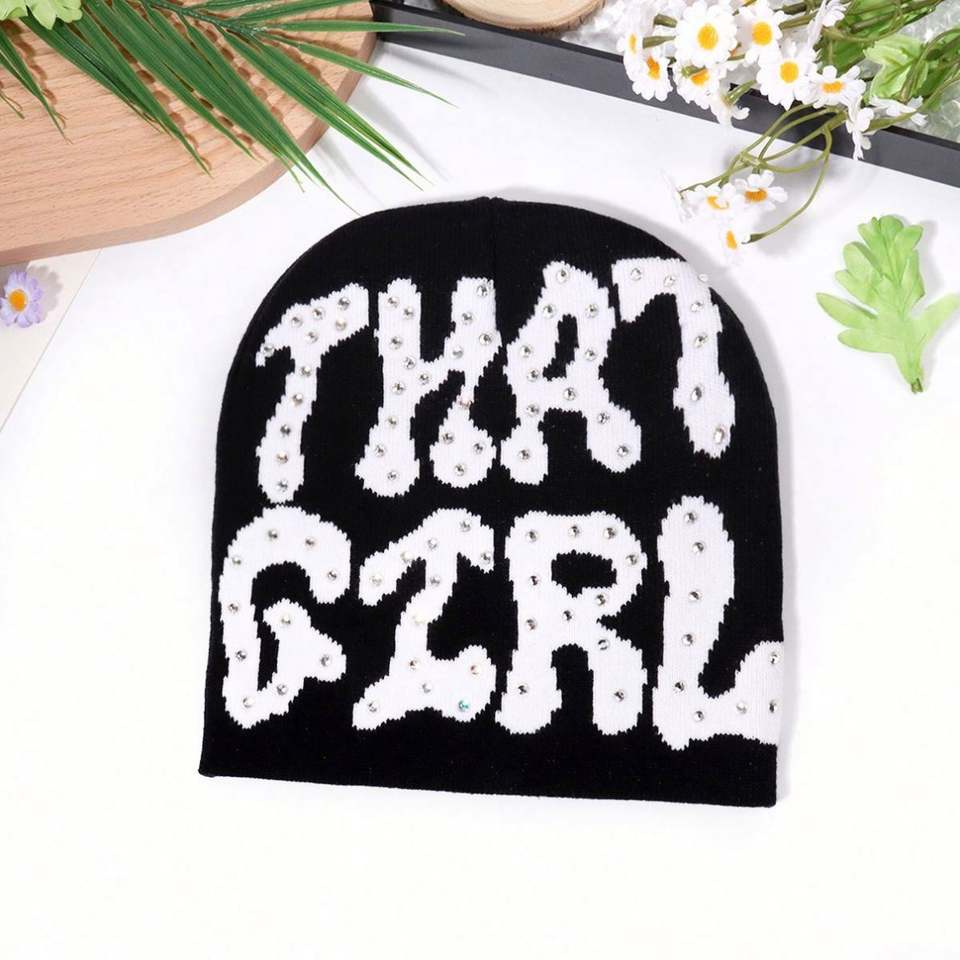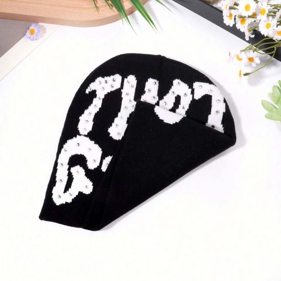 Gorro de Punto Jacquard Otoño Invierno con Letra de Diamantes de Imitación, Gorros de Moda para Hombre y Mujer que Combinan con Todo