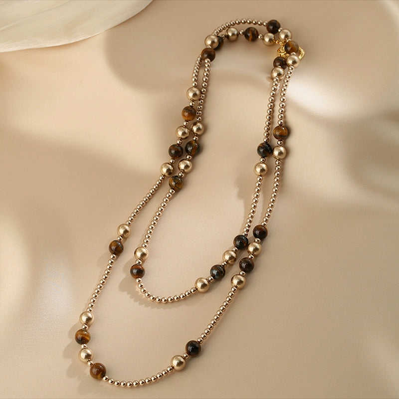 Collar de Perlas para Mujer WENCHI, Otoño Invierno, Cadena Larga con Cuentas de Ojo de Tigre Merad, Estilo Clásico, Religioso y Lindo, 450g