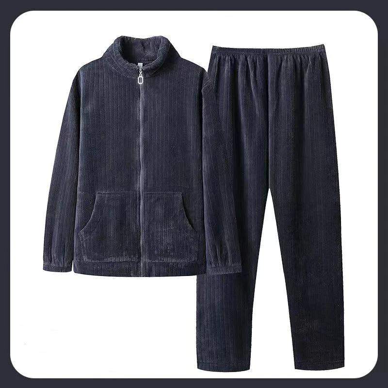 Otoño Invierno hombres pijamas trajes sólido piña estampado a cuadros Coral terciopelo abrigo y pantalones 2 piezas conjunto franela ropa de casa