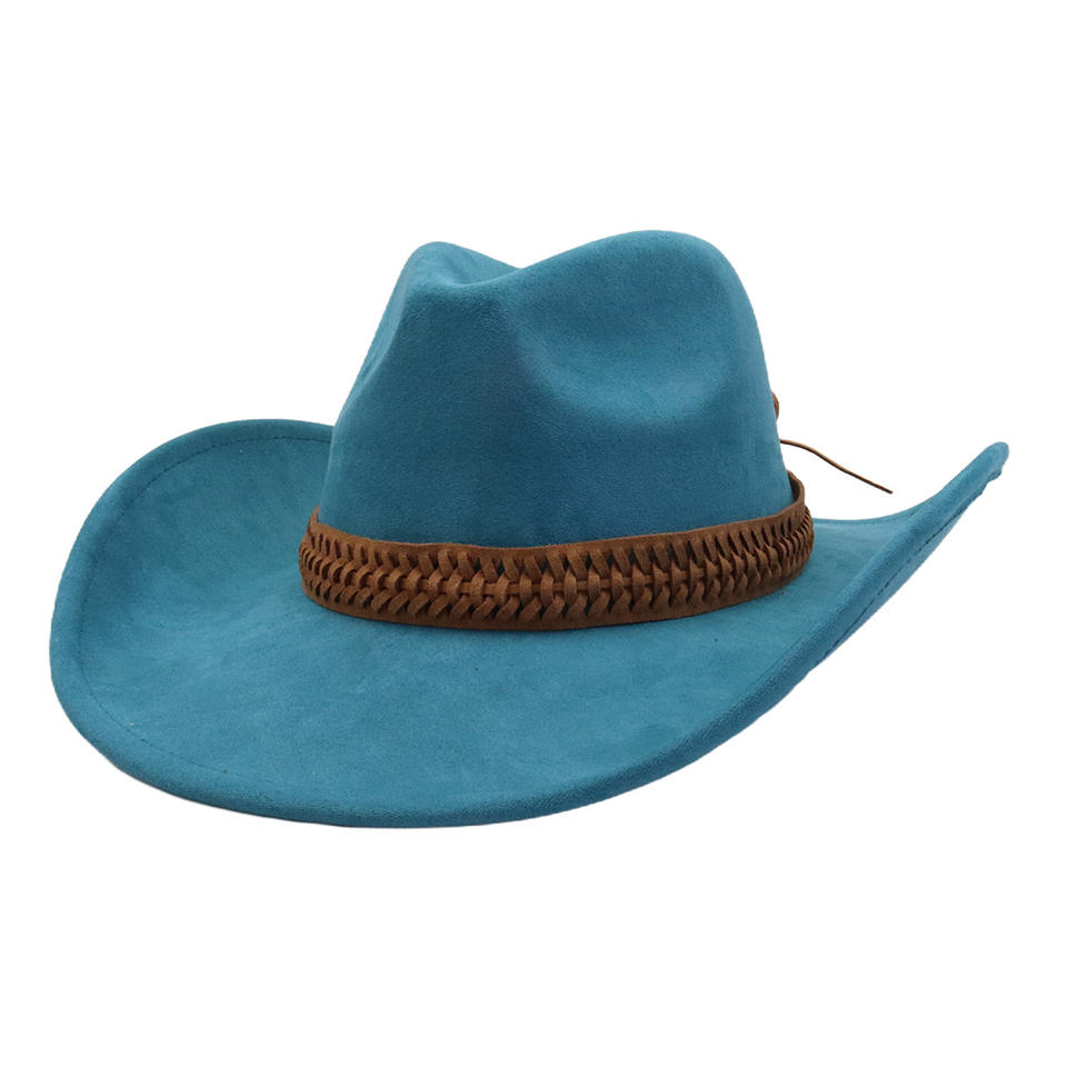 Otoño Invierno nuevos hombres mujeres gamuza sombrero de vaquero con banda de gamuza estilo étnico occidental Jazz gran borde protector solar sombrero para Casual