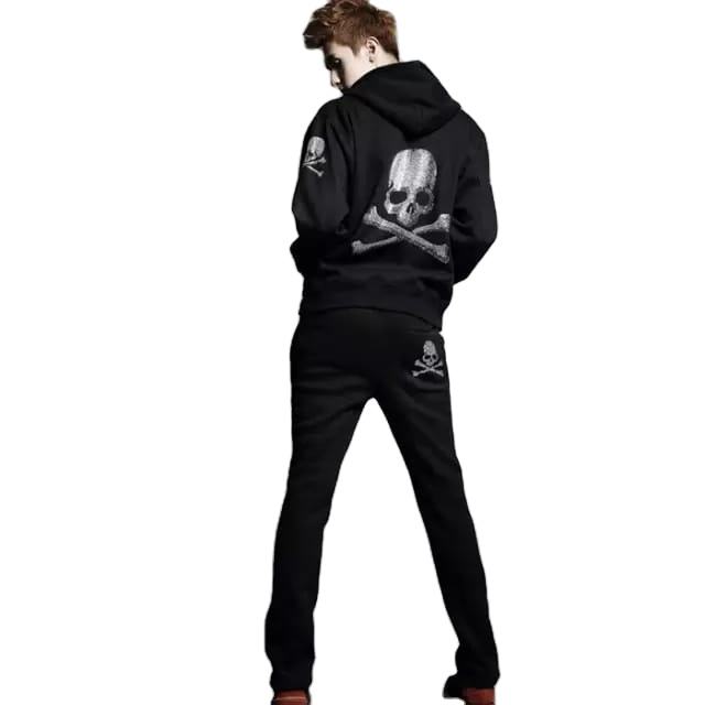 Conjunto Deportivo de Dos Piezas con Capucha, 100% Algodón Transpirable, Talla Grande, para Otoño e Invierno, para Correr, Entrenar, con Pedrería