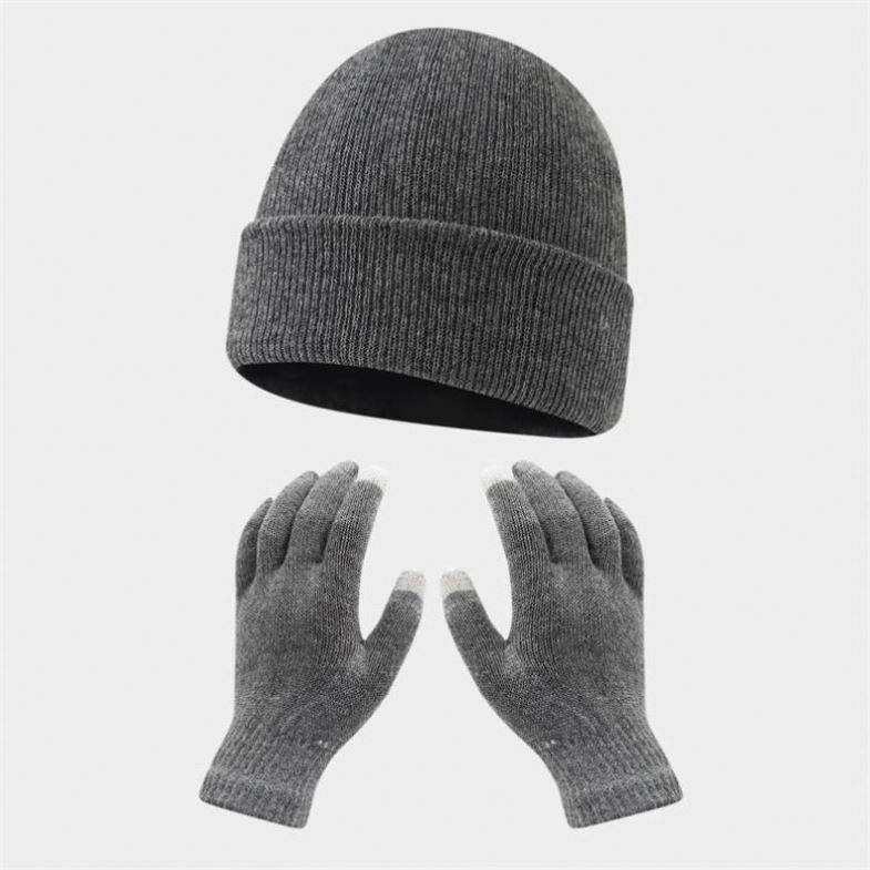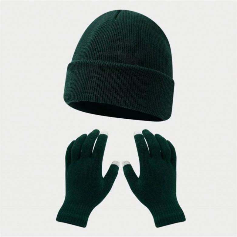 Conjunto de Gorro y Guantes de Punto Acrílico Personalizados con Pantalla Táctil, Color Sólido, para Otoño e Invierno, para Montar al Aire Libre, Cálidos y Resistentes al Frío, para Esquí