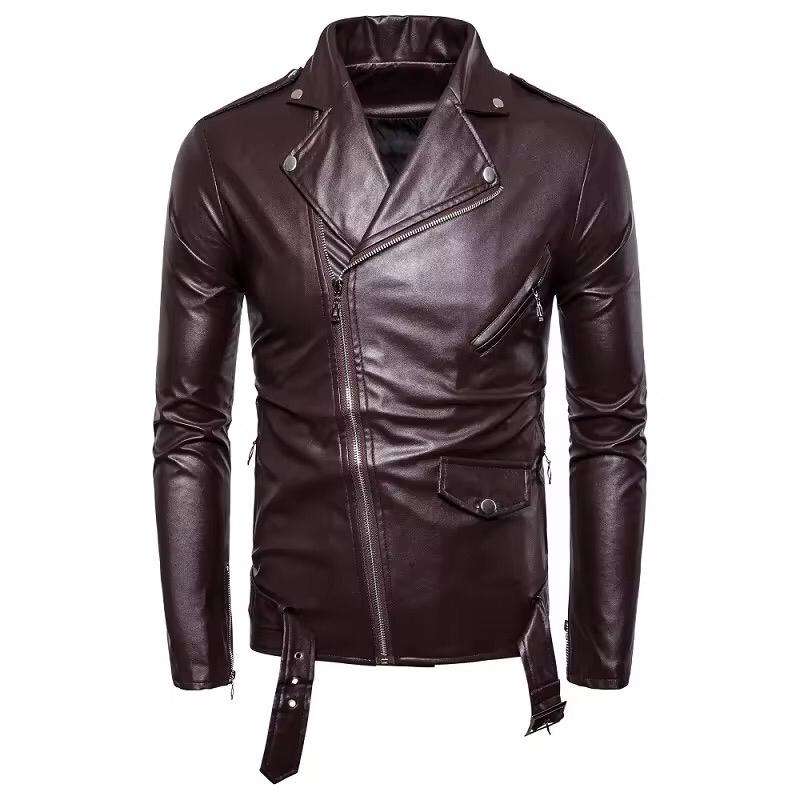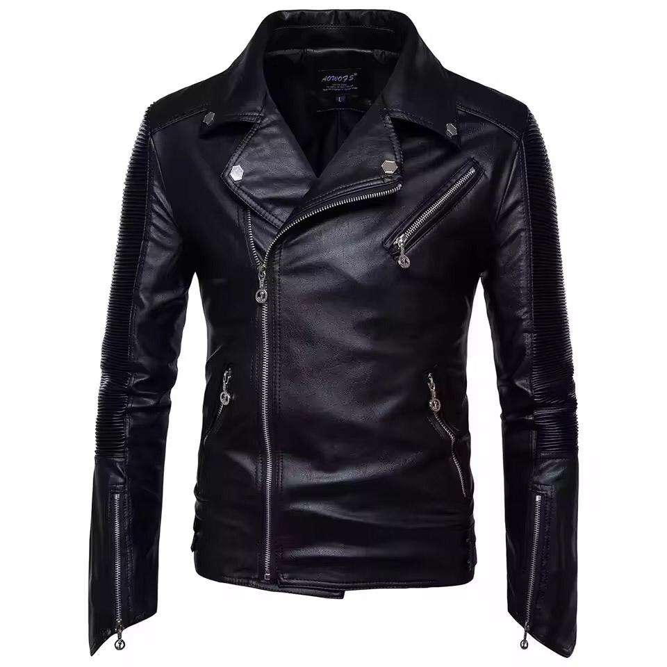 Chaqueta Casual de Cuero 100% para Hombre, Otoño Invierno, Venta al por Mayor, Talla Grande, Color Sólido, Cierre de Cremallera, Estilo Moderno