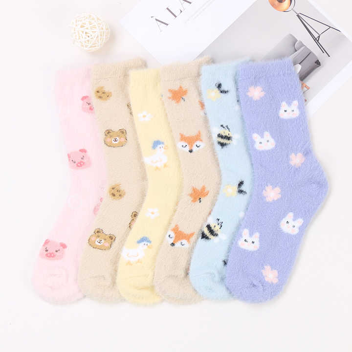 Nombre del producto:Animal Bee Pig Calcetines de lana de coral para mujer