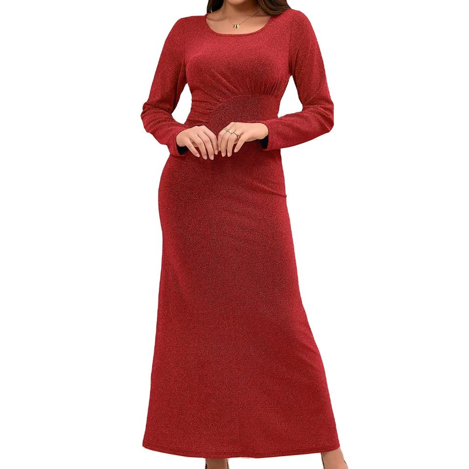 Vestido de noche brillante de manga larga con cuello redondo de otoño e invierno europeo y americano