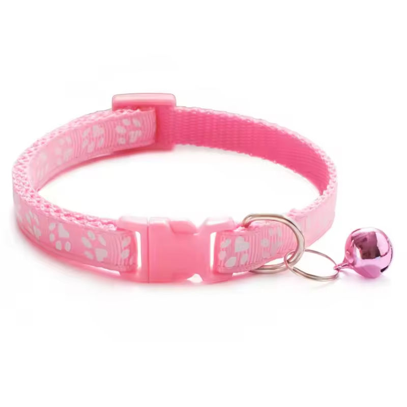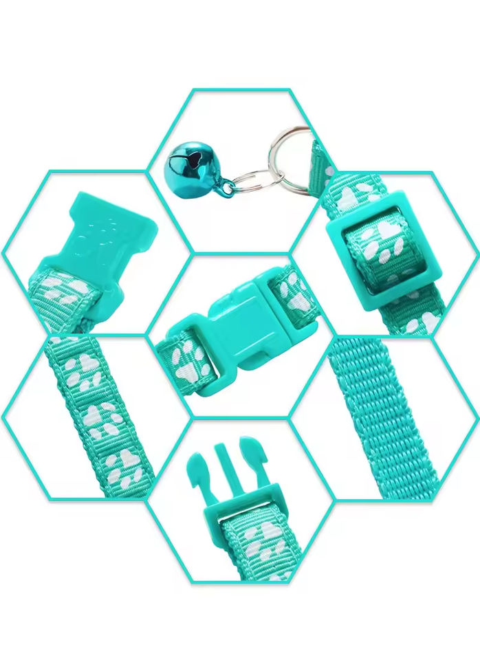 Collar Moderno con Hebilla de Seguridad con Diseño de Huella de Gato y Campana, Collar de Fibra de Poliéster Suave y Cómodo para Gatos, para Uso en Todas las Estaciones