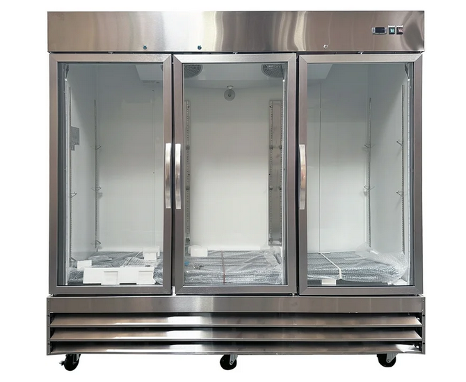 Congelador Comercial de 80” con Certificación NSF y 3 Puertas de Vidrio, Disponible en Stock | Acero Inoxidable –8 ° De F a 0 ° F | R290 | Certificado por ETL y NSF
