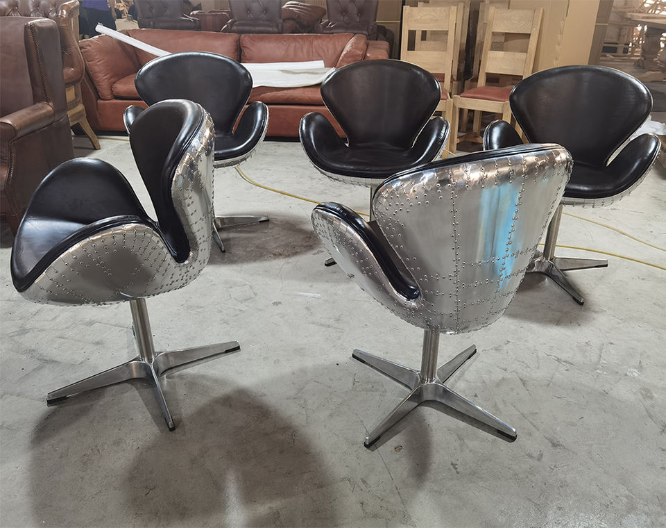 Aviación Arne Jacobsen aluminio Spitfire Vintage Silla de cuero