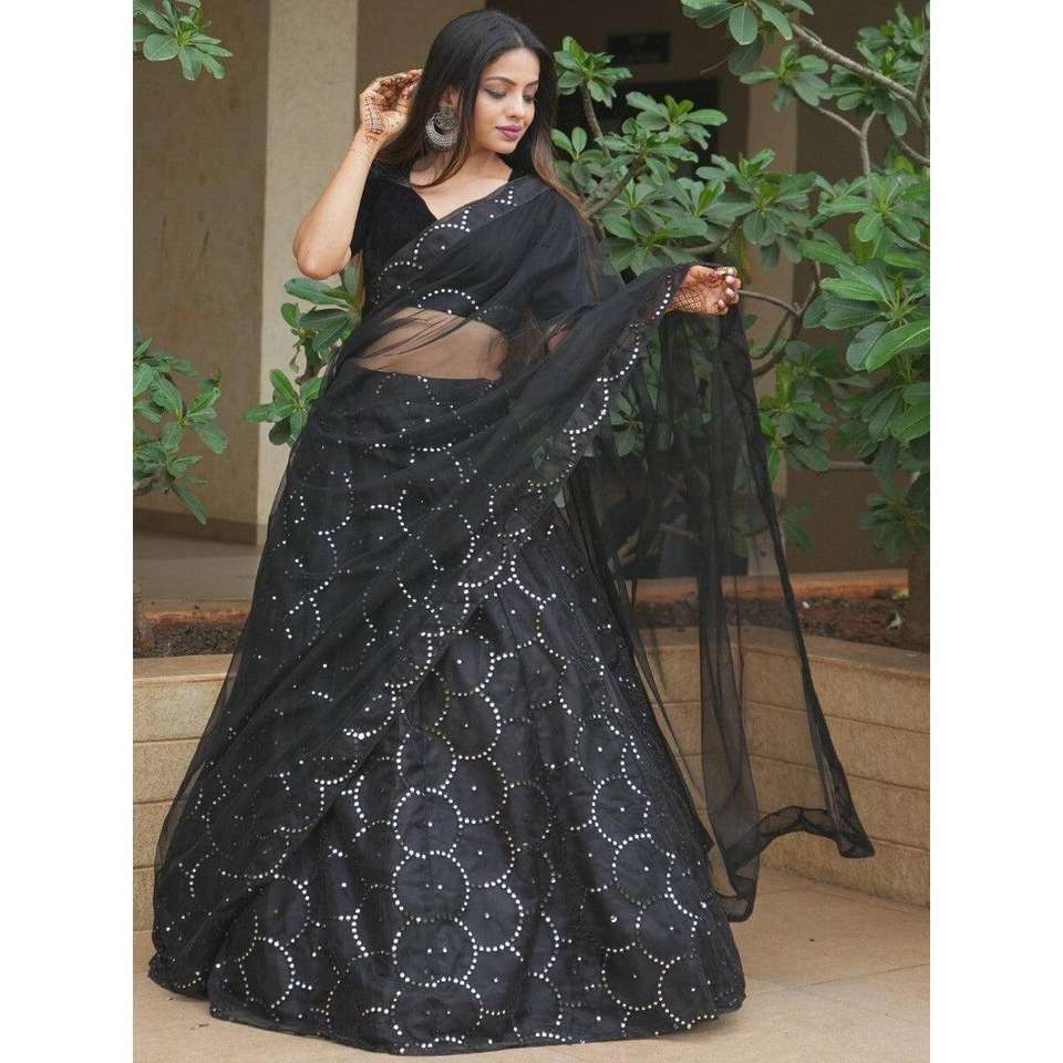 Impresionante ropa de fiesta de organza bordada negra Lehenga Choli