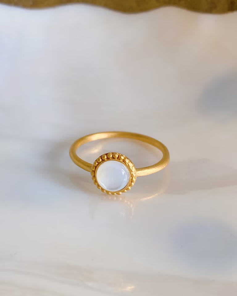 Impresionante hecho a mano estándar plata chapado en oro forma redonda anillo de piedras preciosas de ónix blanco juego de bisel de 8MM para regalo de aniversario y esposa