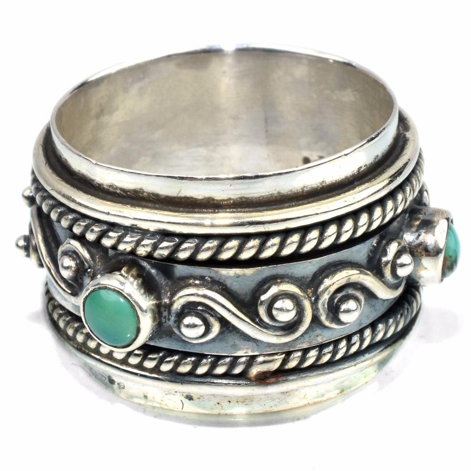 Anillo de plata de primera ley con forma redonda para mujer, sortija, plata esterlina 925, color verde turquesa, estilo Midi, 925