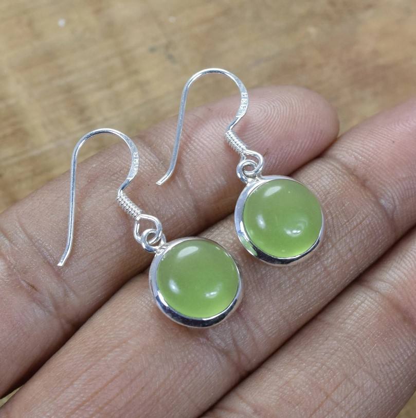 Nombre del producto:Pendientes de plata de piedras preciosas de Prehnite verde natural