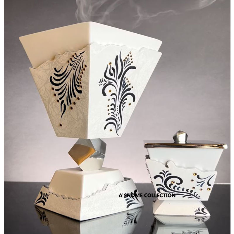 Impresionante diseño de forma cuadrada de Color blanco quemador de incienso pares de Metal de 2 difusores de aromaterapia y decoración del hogar