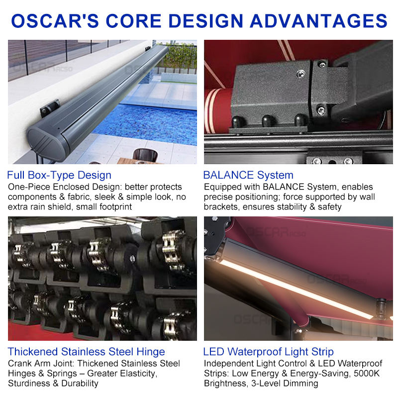 Al aire libre, Hotel, Comercial, Camping, Playa, Jardín, Dosel de lluvia, Balcón, Eléctrico, Protección contra la lluvia, Decorativo, Terraza, Cenador, Protección UV, Toldos motorizados de la pérgola, Jardín al aire libre, CAFÉ TIENDA, Natación piscina, Residencial, VILLA, Patio al aire libre, Iluminación LED, A prueba de agua, Toldo retractable, Parasol, Patio trasero, Protección solar