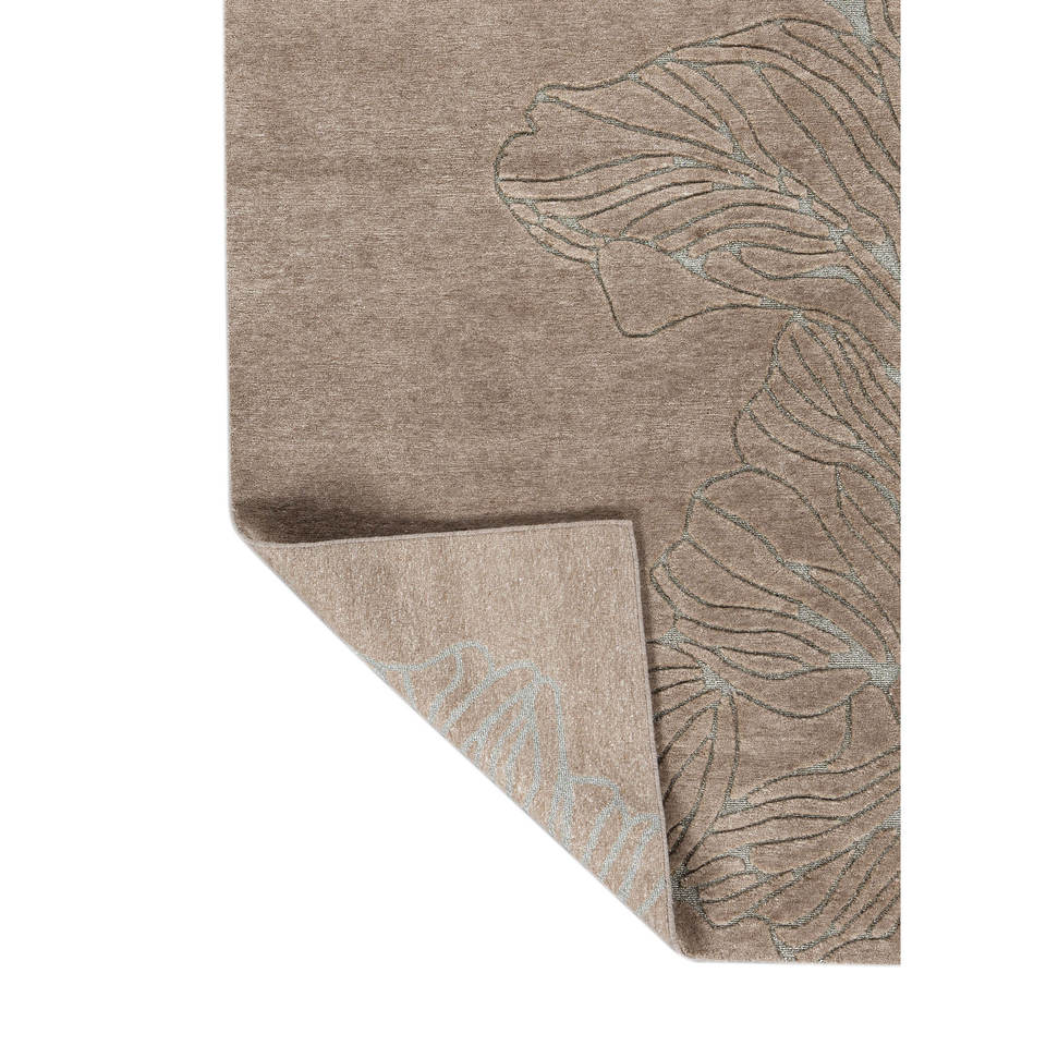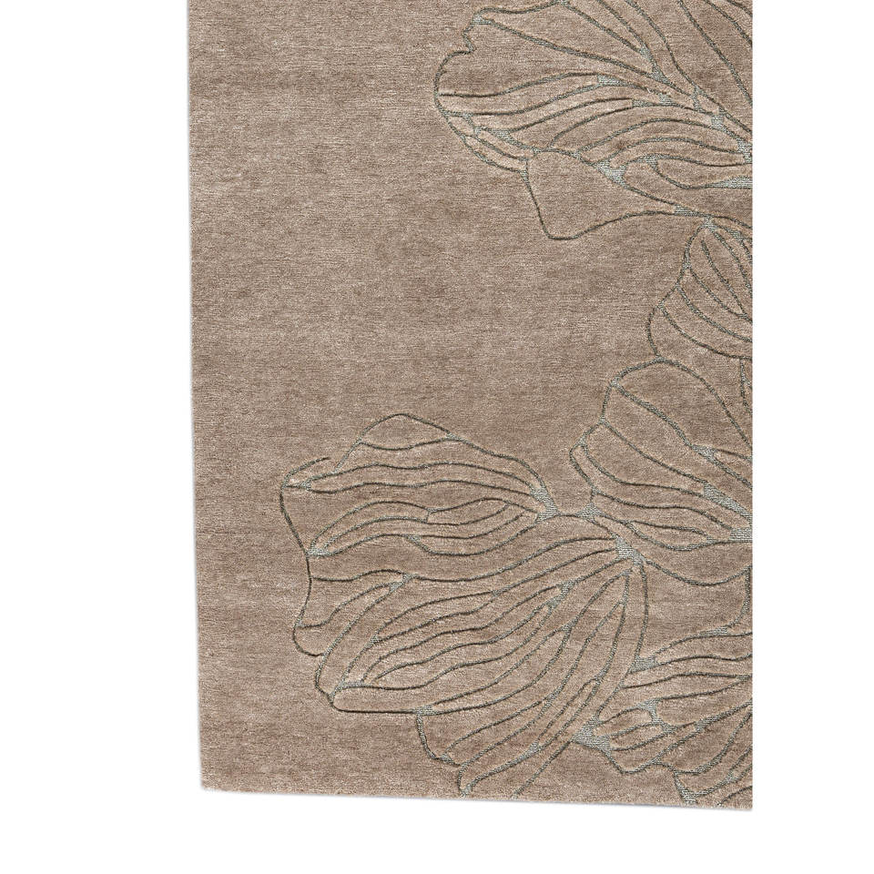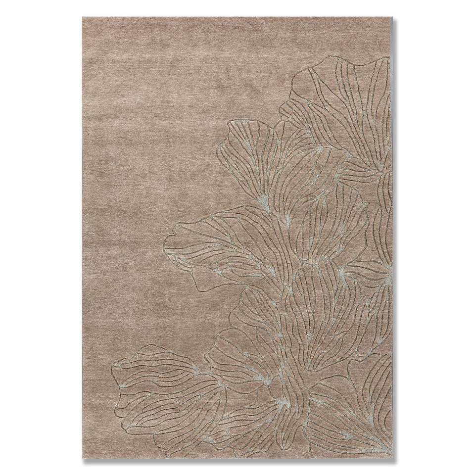Alfombra de Lana Anudada a Mano Azalea Beige Marrón con Patrón Floral Rectangular 9x12 para Sala de Estar, Pasillo, Decoración Tipo Rompecabezas, Modelo Aiwz-1001