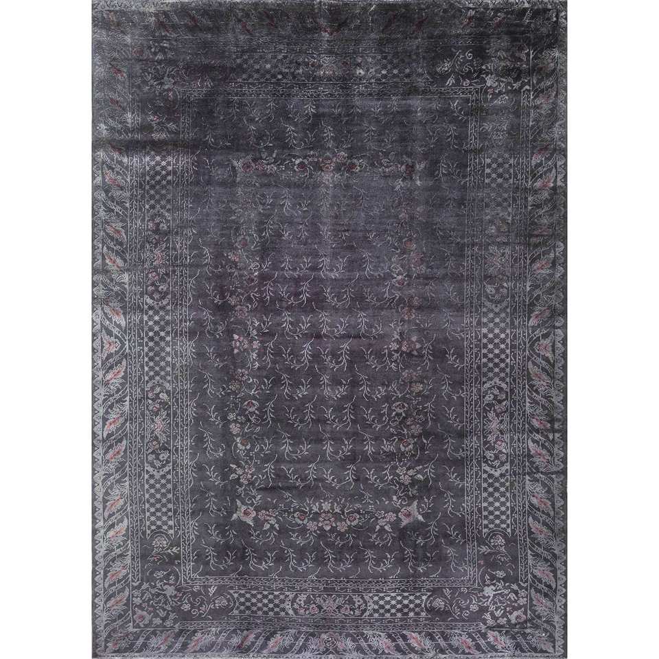 Alfombra Azalea de Lana y Seda Anudada a Mano con Patrón Floral para Decoración de Sala de Estar o Pasillo -Pae-6128 Tamaño 9x12 Diseñador de Interiores