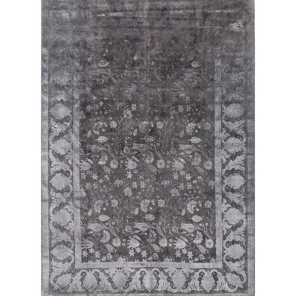 Alfombras Azalea de Lana y Seda Anudadas a Mano, Grises y Negras con Patrones Florales y Abstractos para el Hogar, Pasillo, Dormitorio y Sala de Estar -Pae-6144