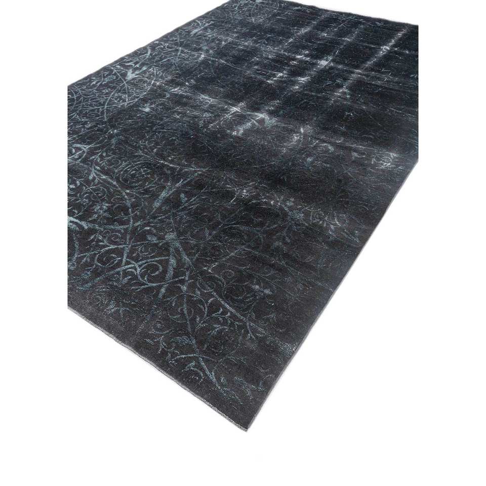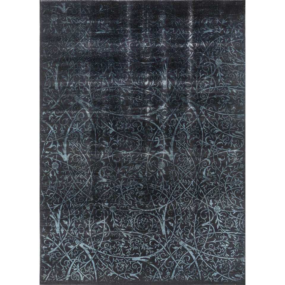 Alfombras Azalea de Lana y Seda Anudadas a Mano, Grises y Negras con Patrones Florales y Abstractos para el Hogar, Pasillo, Dormitorio y Sala de Estar -Pae-6160