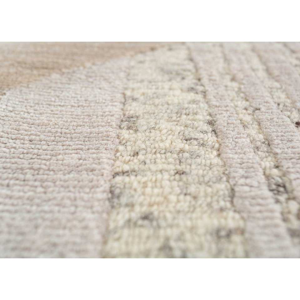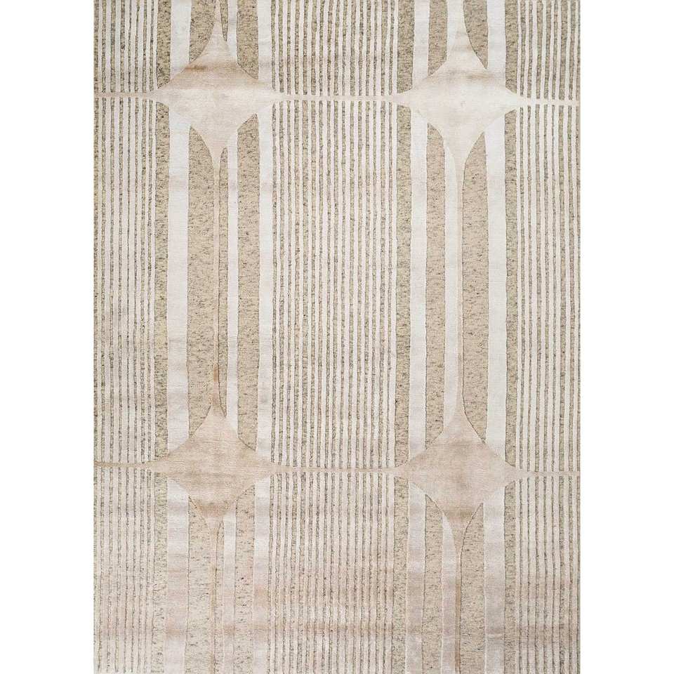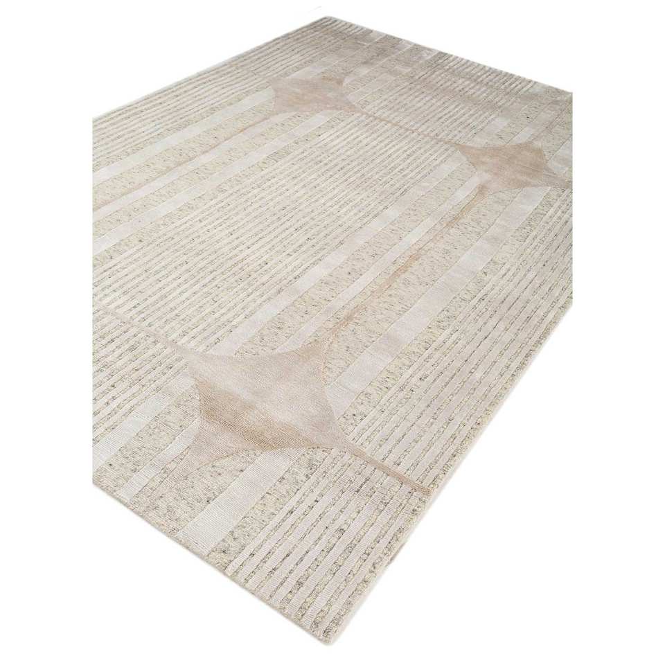 Alfombra Azalea Ivory de Lana y Seda de Bambú Anudada a Mano con Patrón Geométrico Abstracto para el Hogar, Pasillo o Suelo, Grosor de 10 mm - Modelo Aiwb-4010