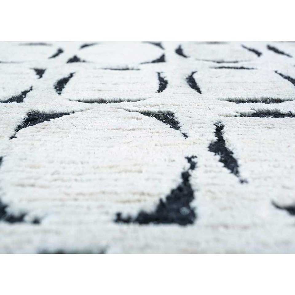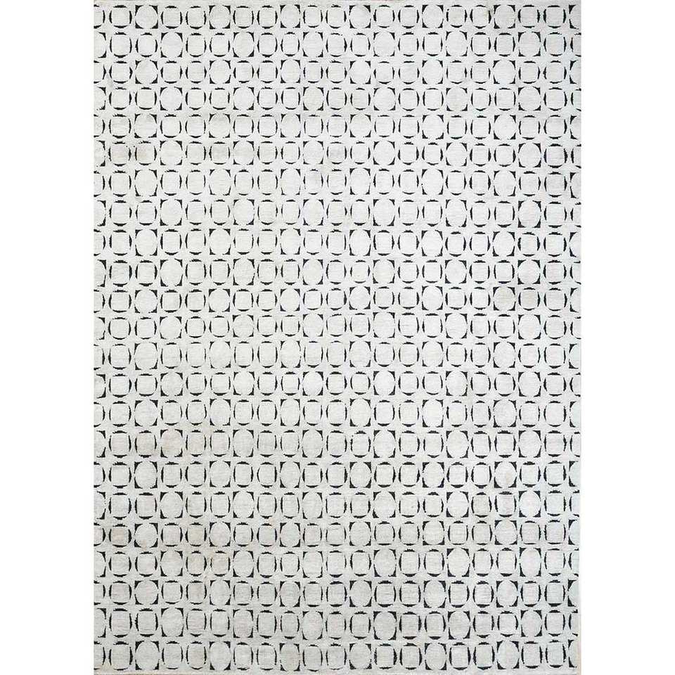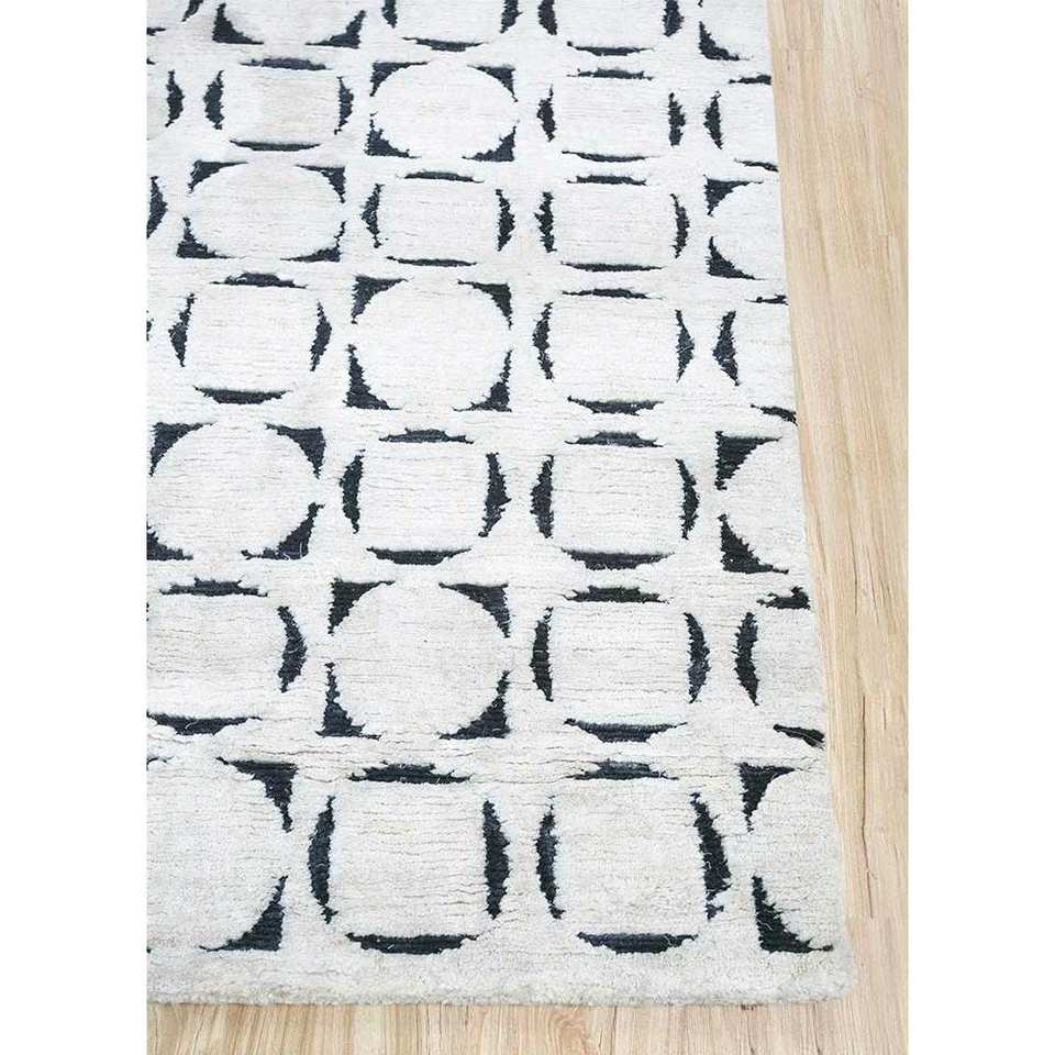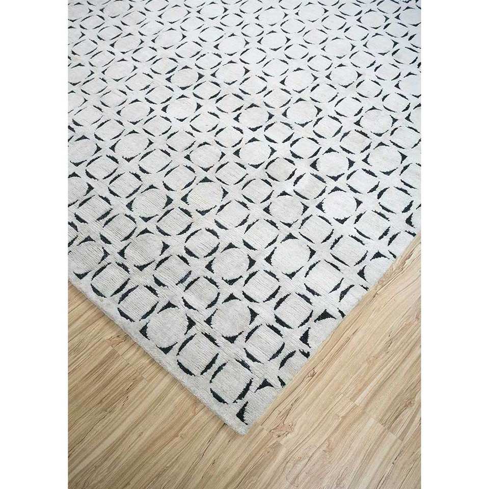 Alfombra de Lana y Seda Azalea Ivory, Tejida a Mano, con Patrón Geométrico, Alfombra de Yute para Sala de Estar, Pasillo, Diseño de Rompecabezas de Algodón Orgánico