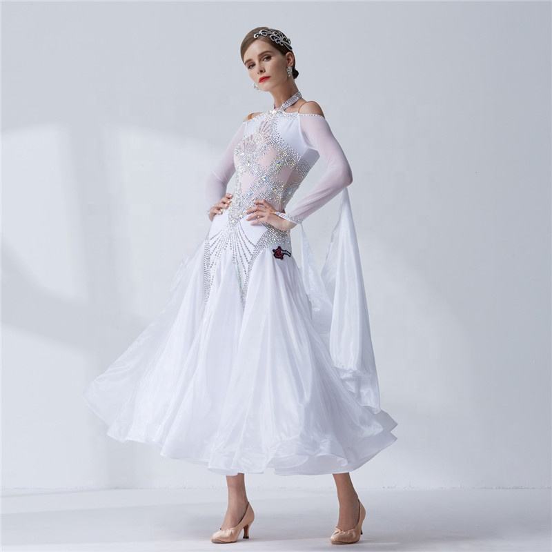 B-19374 de baile de alta gama para mujer, traje de baile moderno estándar, para competición, baile de salón, liso