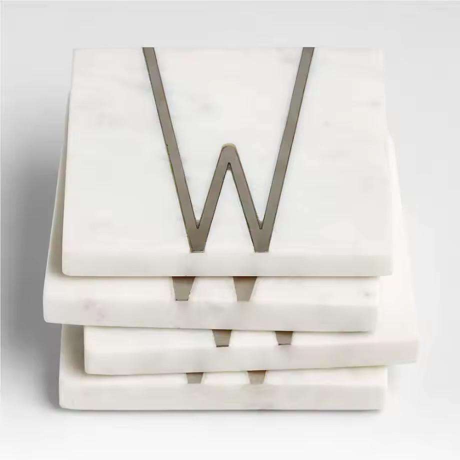 B Metal incrustaciones alfabeto grabado nuevo diseño mármol posavasos personalizado redondo taza Mat fácil de limpiar manteles individuales mármol posavasos conjunto