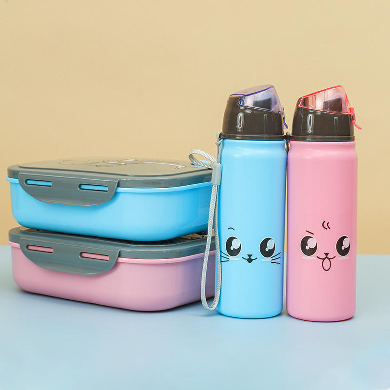 B178 Cute School Lunch Box Kit Plástico Portátil BPA Contenedor de alimentos con botella de agua a juego Característica calentable