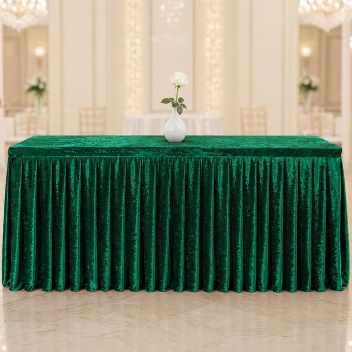 Falda de mesa de terciopelo personalizada a granel B2B, mantel de terciopelo arrugado de alto gramaje para bodas y fiestas de aniversario