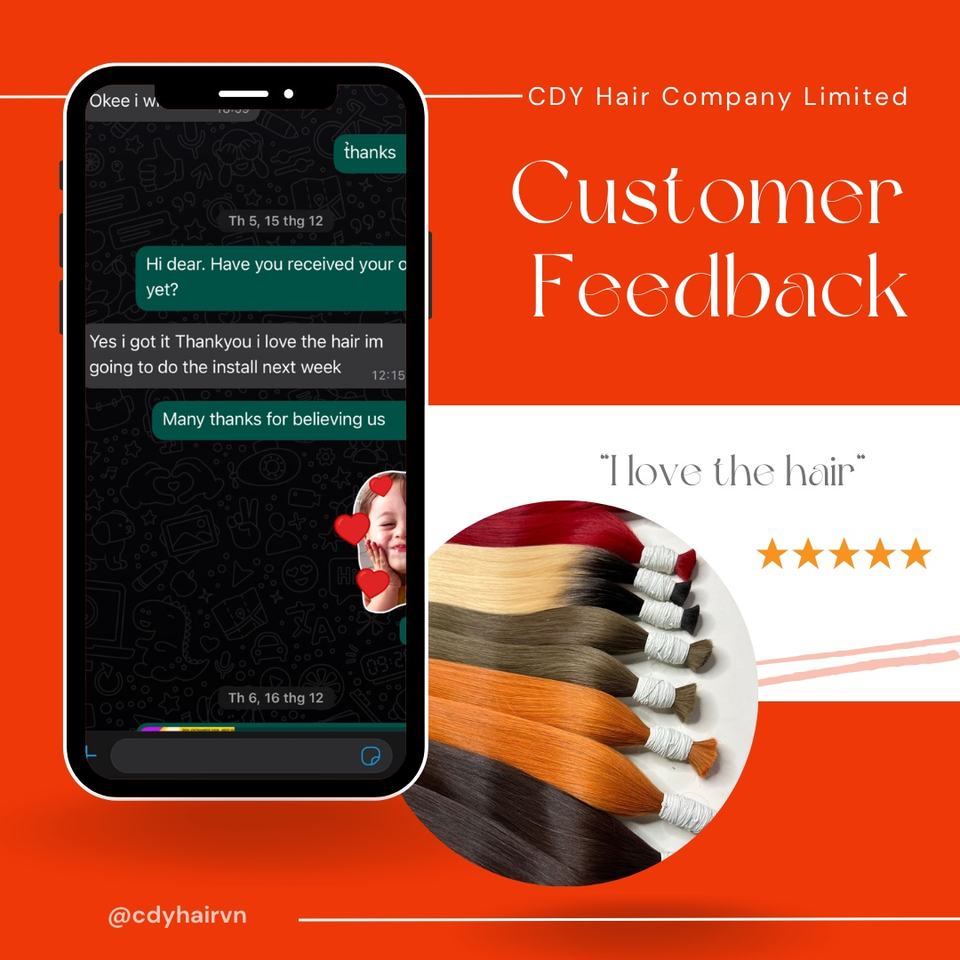 Proveedor B2B CDYHAIRVN, Paquetes de Cabello Humano Virgen Vietnamita Liso Natural, Color Rojo Personalizado, Sin Procesar, Cutícula Alineada