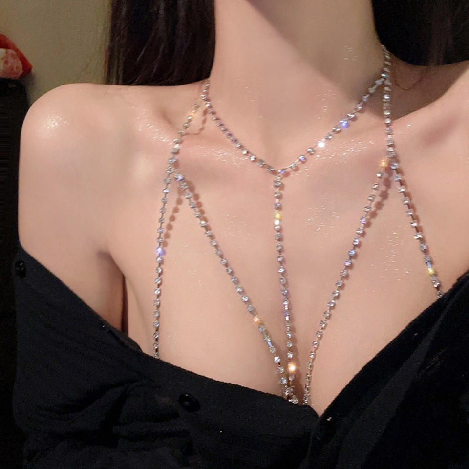B3758 Cadena de cuerpo de cristal transparente Cadena de pecho impermeable cuello de diamante Cadena de Bikini sexy
